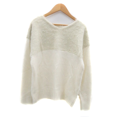 バンヤードストーム BARNYARDSTORM ニット セーター ラウンドネック 長袖 ウール混 切替 0 XS オフホワイト ライトグレー レディース