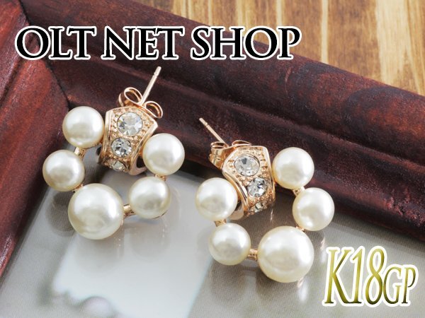 パール ピアス レディース 真珠 18金 18kコーティング ピンクゴールド フォーマル 上品 女性 / K18GP CZダイヤ 5粒パールラウンドピアス
