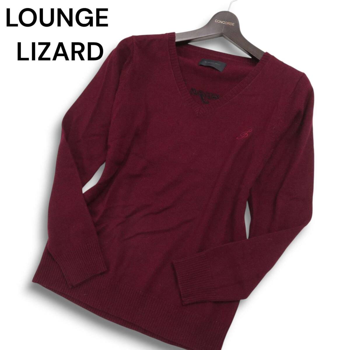 LOUNGE LIZARD ラウンジリザード 秋冬★ カシミヤ アンゴラ ウール混 バック ロゴ セーター Vネック ニット Sz.2 メンズ