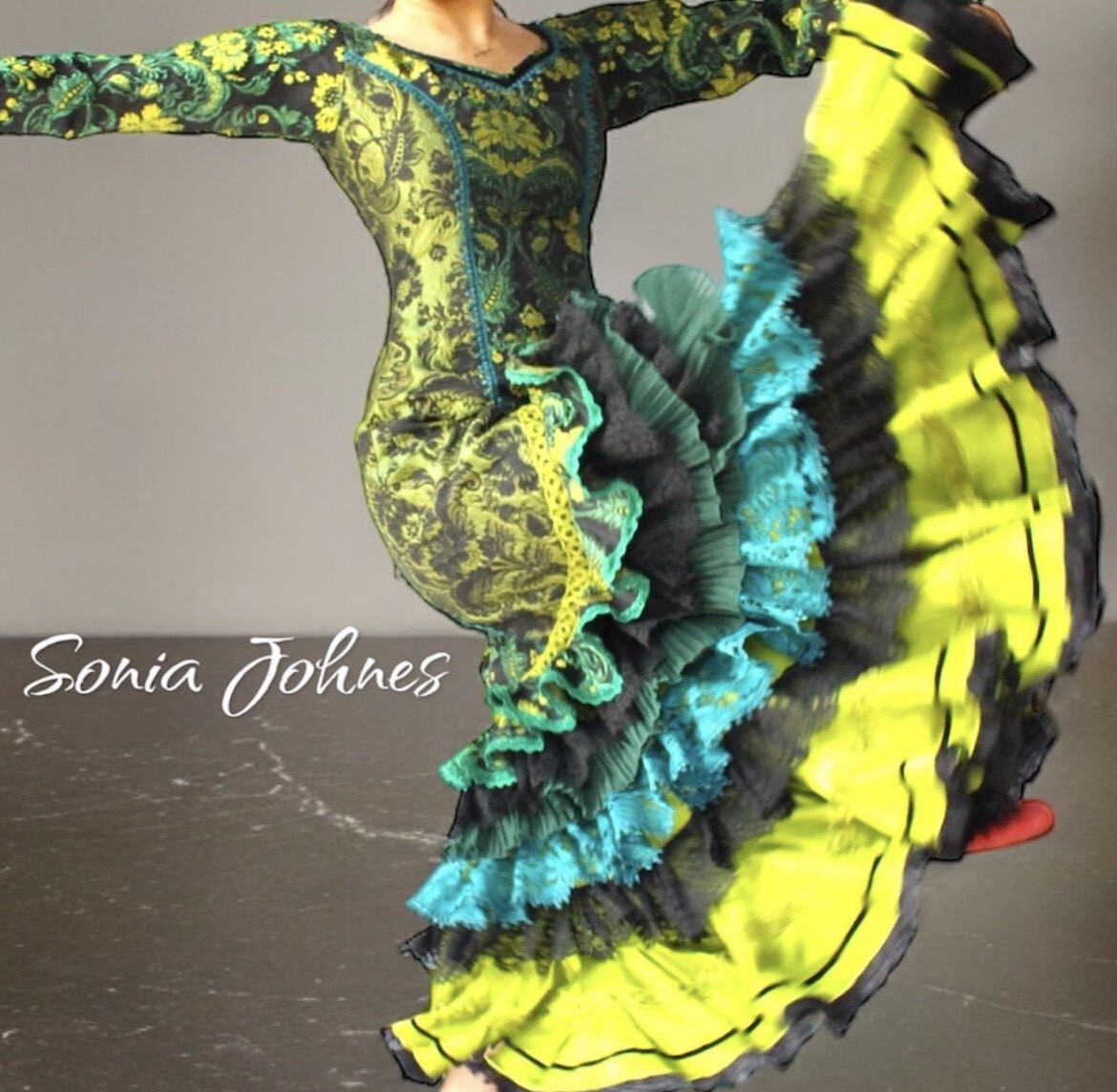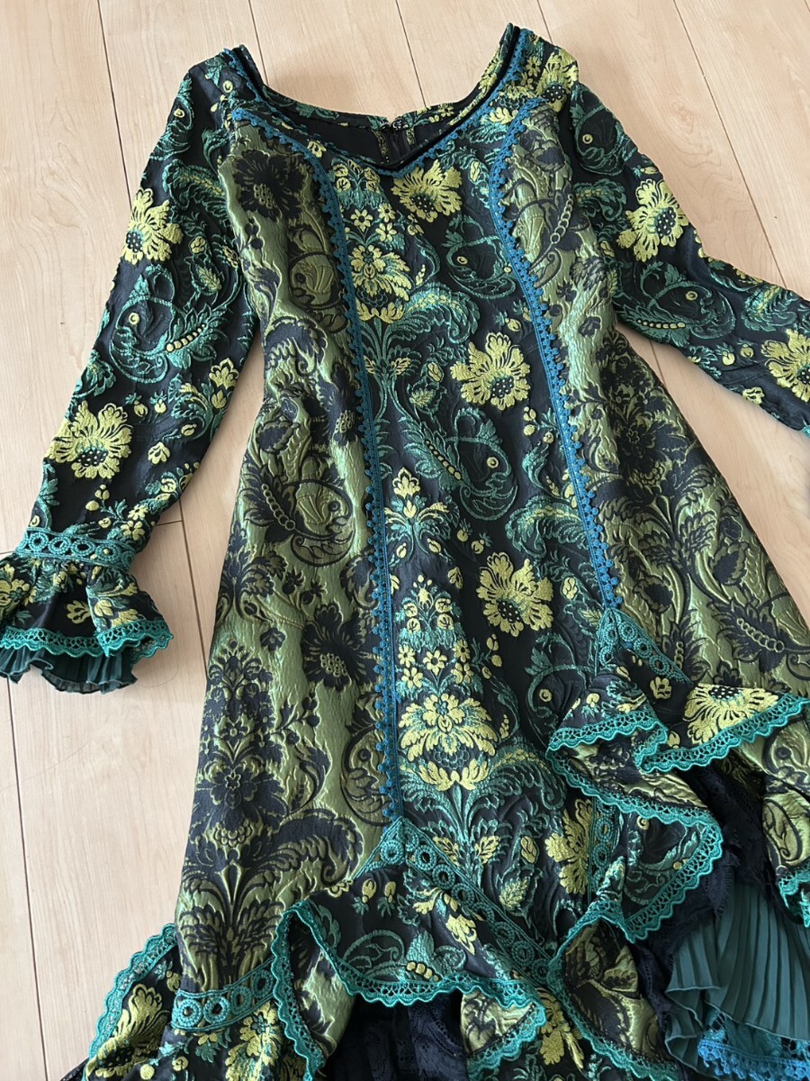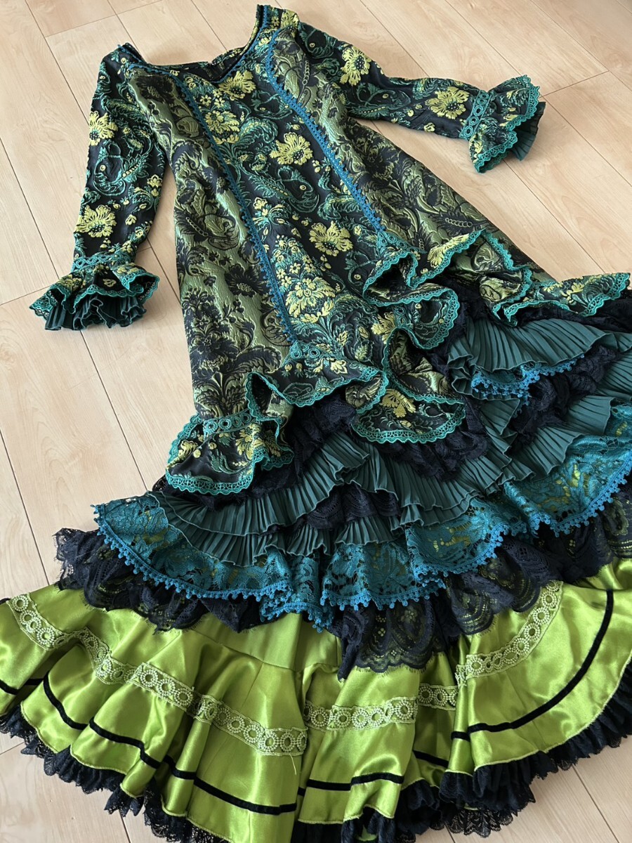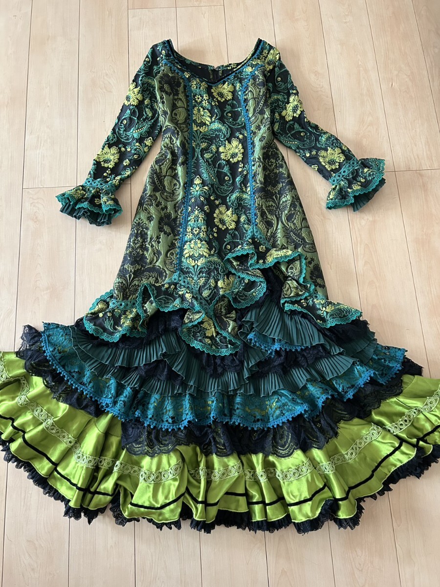 ★ソニアさんの見本衣装(画像13枚目)ファルダ部分のレースボランテをターコイズからグリーンに変更してます。