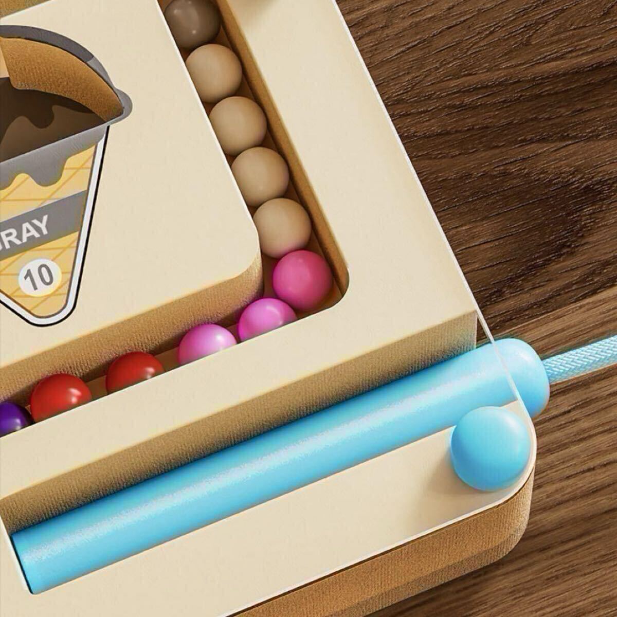 磁気ペンを使用して、対応する色のアイスクリームに到達するように磁気ビーズを引っ張ります。遊びを通して、子供たちは色合わせや数を数える練習をしたり、注意力を高めたりしながら学ぶことができます。手先を使う練習にもなり、集中力もUPします!