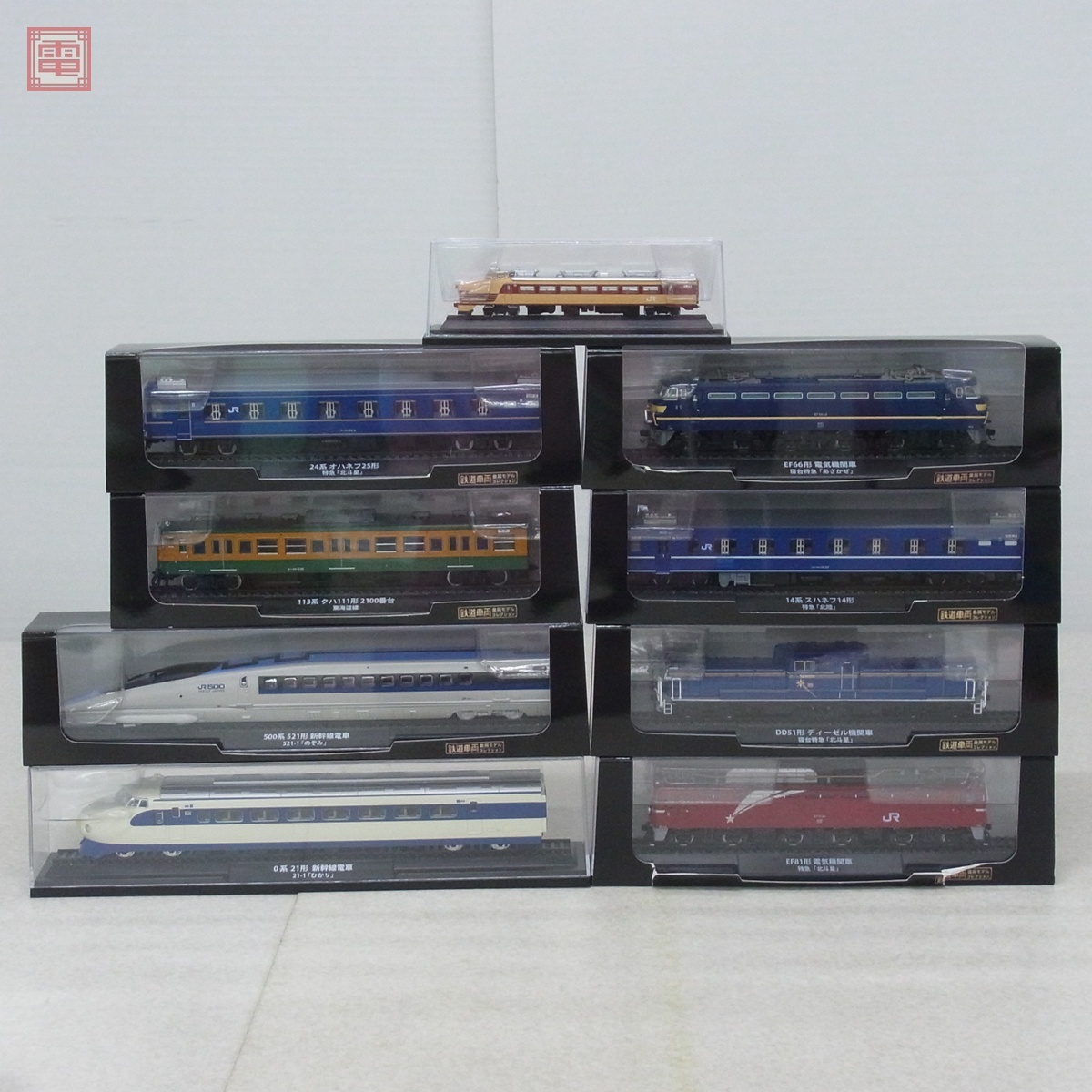 デアゴスティーニ HOゲージ 鉄道車両 金属モデルコレクション 24系オハネフ25形 特急北斗星 等 おまけ付き 計8両セット ■外箱にスレ、破れがあります。 ■ケースにキズがあります。 ■写真のものが全てです。付属物の有無や状態については写真からご判断ください。 ■付属物については細かいチェックはしておりませんので、万が一、欠品があったり余計な物が入っていたとしてもご了承ください。 ■商品到着後、当店の保証期間中は、商品及び箱や取説、付属品などを1つでも廃棄や破損をしないようにお願い致します。廃棄や破損をした場合、商品に問題があった場合でも対応や返金などの対処ができなくなります。 ■商品によりますが、発売されてから10年以上経過している中古品である事をご理解頂いた上でご入札をお願い致します。なお、新品や美品、また特記事項がある場合は別途明記します。 | |||