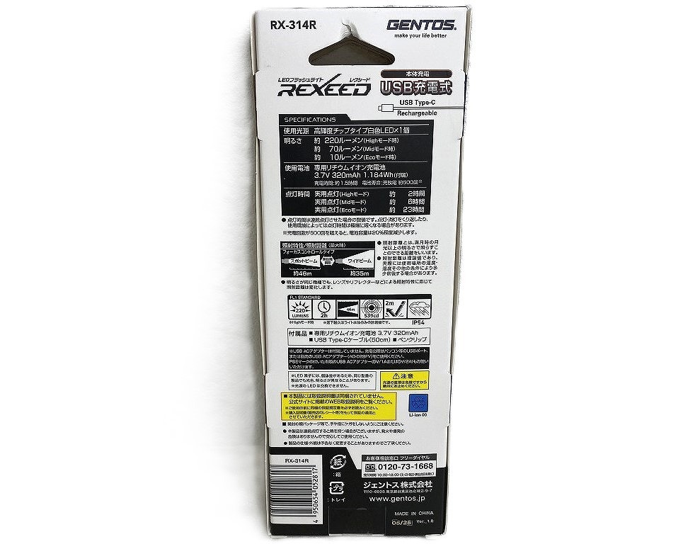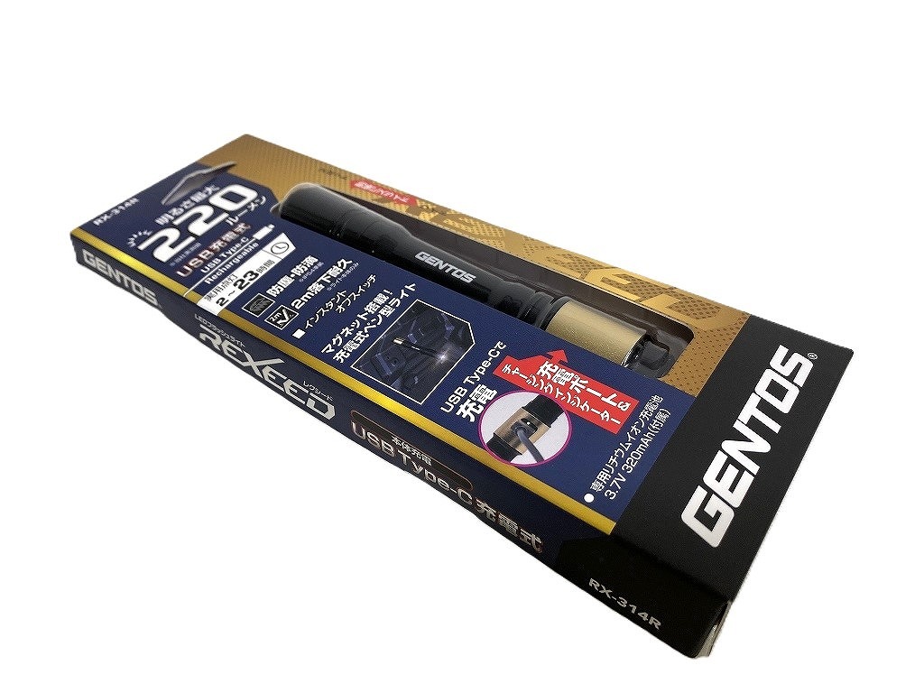 【未使用】 ジェントス GENTOS USB充電式 LED ハンディライト フラッシュライト マグネット 220ルーメント 懐中電灯 RX-314R