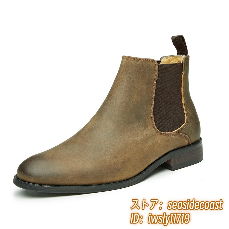極美品★牛革ビジネスシューズ メンズ 本革レザーシューズ マーティンブーツ ハイカット ショートブーツ 紳士靴革靴 通勤 オリーブ 24.5cm