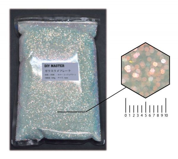◆DIY MASTER ガラスラメフレーク (偏光) レッドxグリーン 1mm 500g◆ | |||||||||