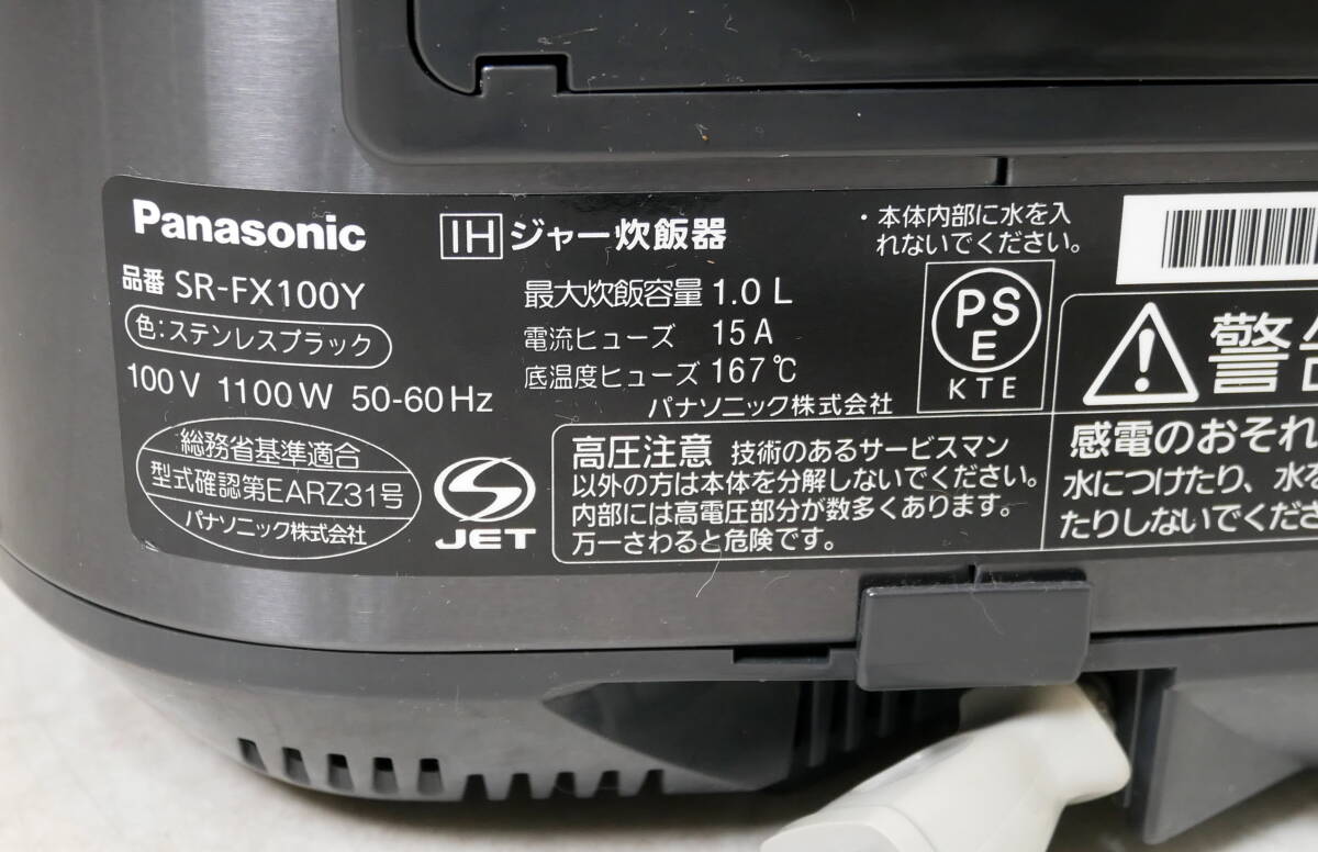 ▲(R710-H31) 動作品 Panasonic パナソニック IHジャー炊飯器 SR-FX100Y 5.5合炊 ダイヤモンド銅釜 ステンレスブラック 2020年製 | ||
