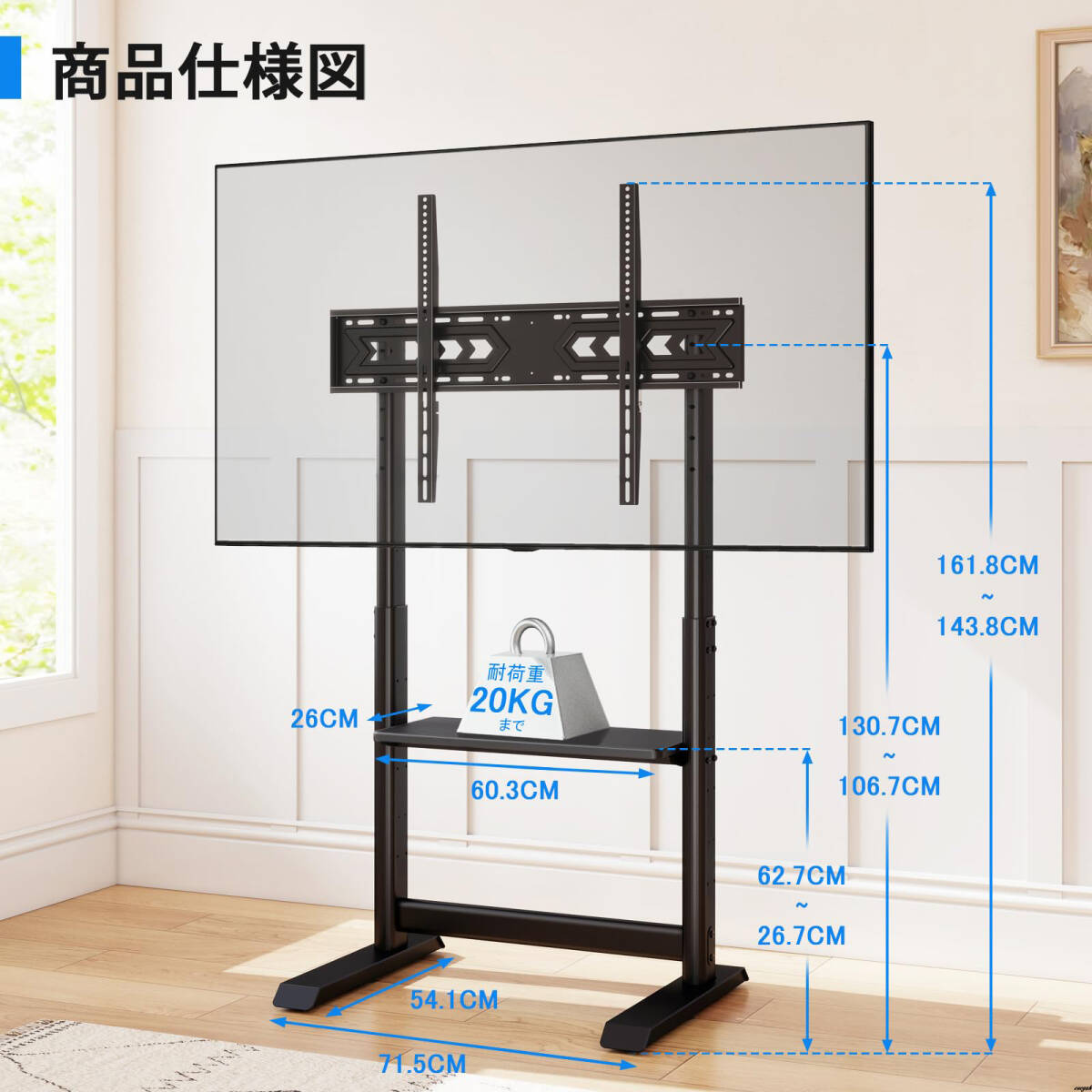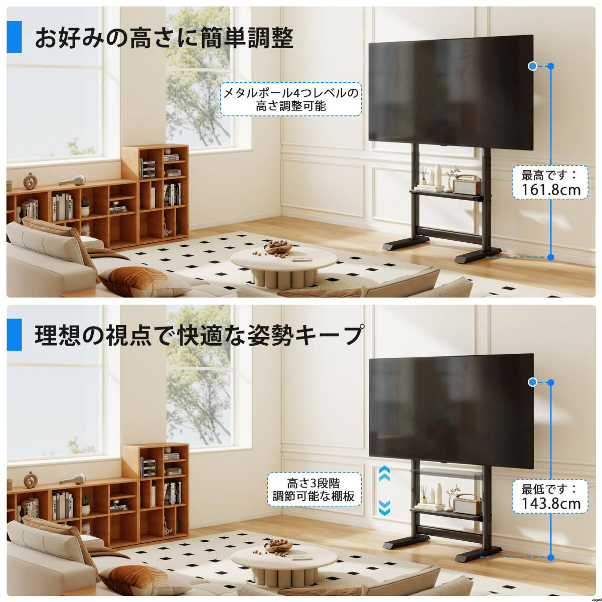 55~100インチの大型テレビに対応するハイタイプテレビスタンドです。