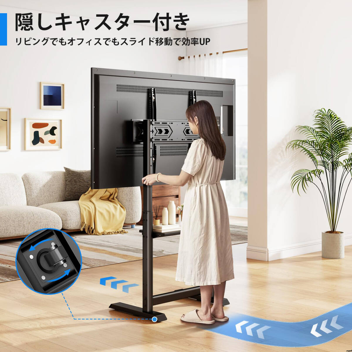 【キャスター付きで移動や掃除、レイアウト変更が簡単】 テレビスタンド 55~100インチ対応 ハイタイプ 棚板付き 省スペース 多機能