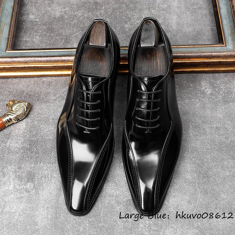 定価9万超★最高級 ビジネスシューズ 職人手作り ドレスシューズ 本革 レザーシューズ 冠婚葬祭 手塗仕上げ 革靴 紳士靴 ブラック 24.5cm