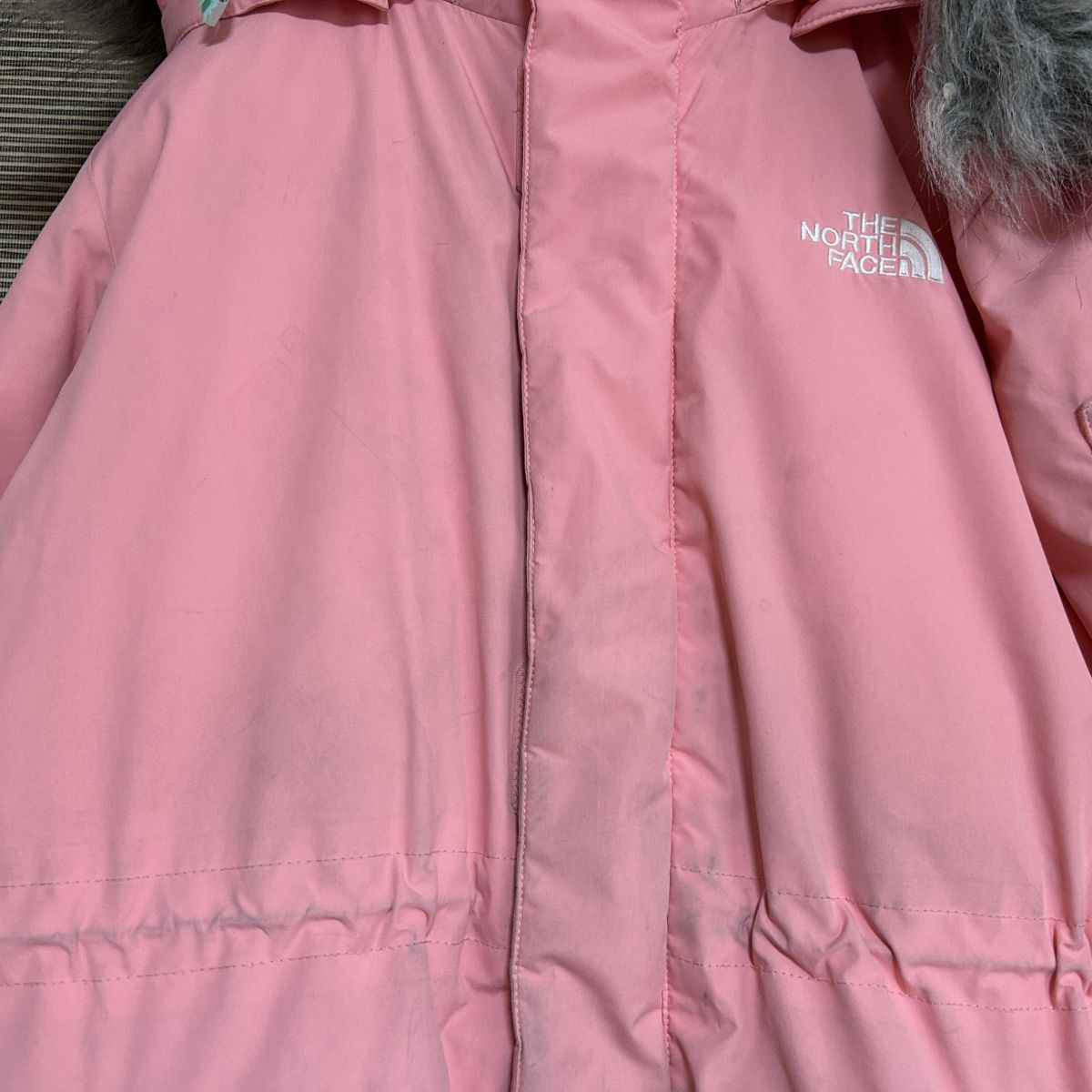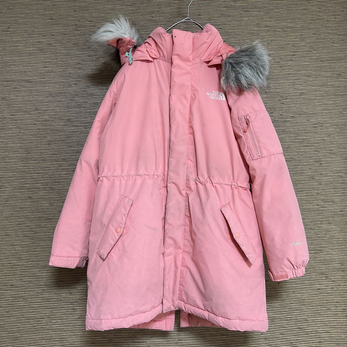 【ノースフェイス】ロングダウンコートベンチコート子供140 ピンクフェイクファーH2 | |