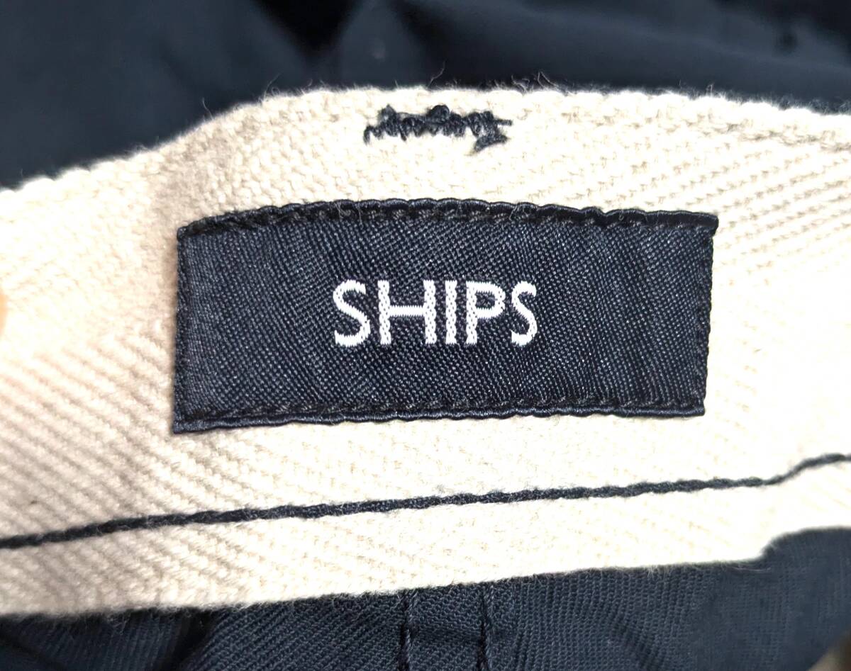 【美品】SHIPS シップス テーパード チノ メンズ 113100234 スラックス パンツ 無地 ネイビー 紺 青 コットン 綿 ズボン L サイズ m ブルー