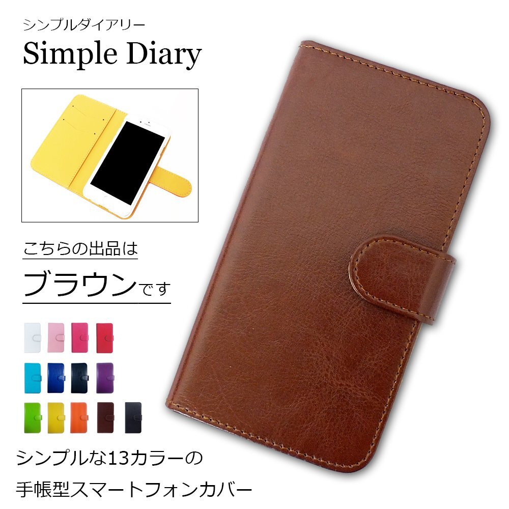 arrows Alpha シンプルダイアリー ブラウン 茶 プレーン PUレザー 手帳型 スマホケース スマホカバー F-51F