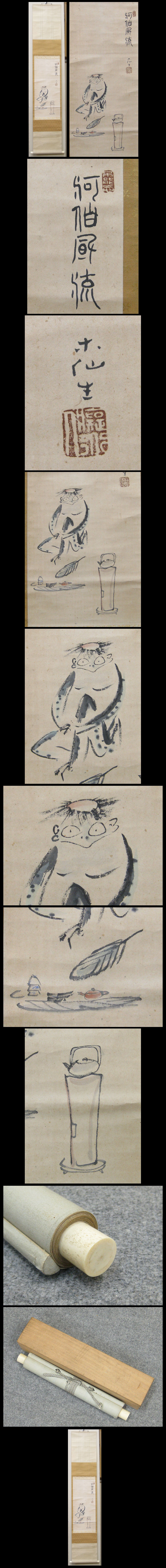 ★掛軸 須賀木仙 紙本河童煎茶図/肉筆 付箱 真作 富山県