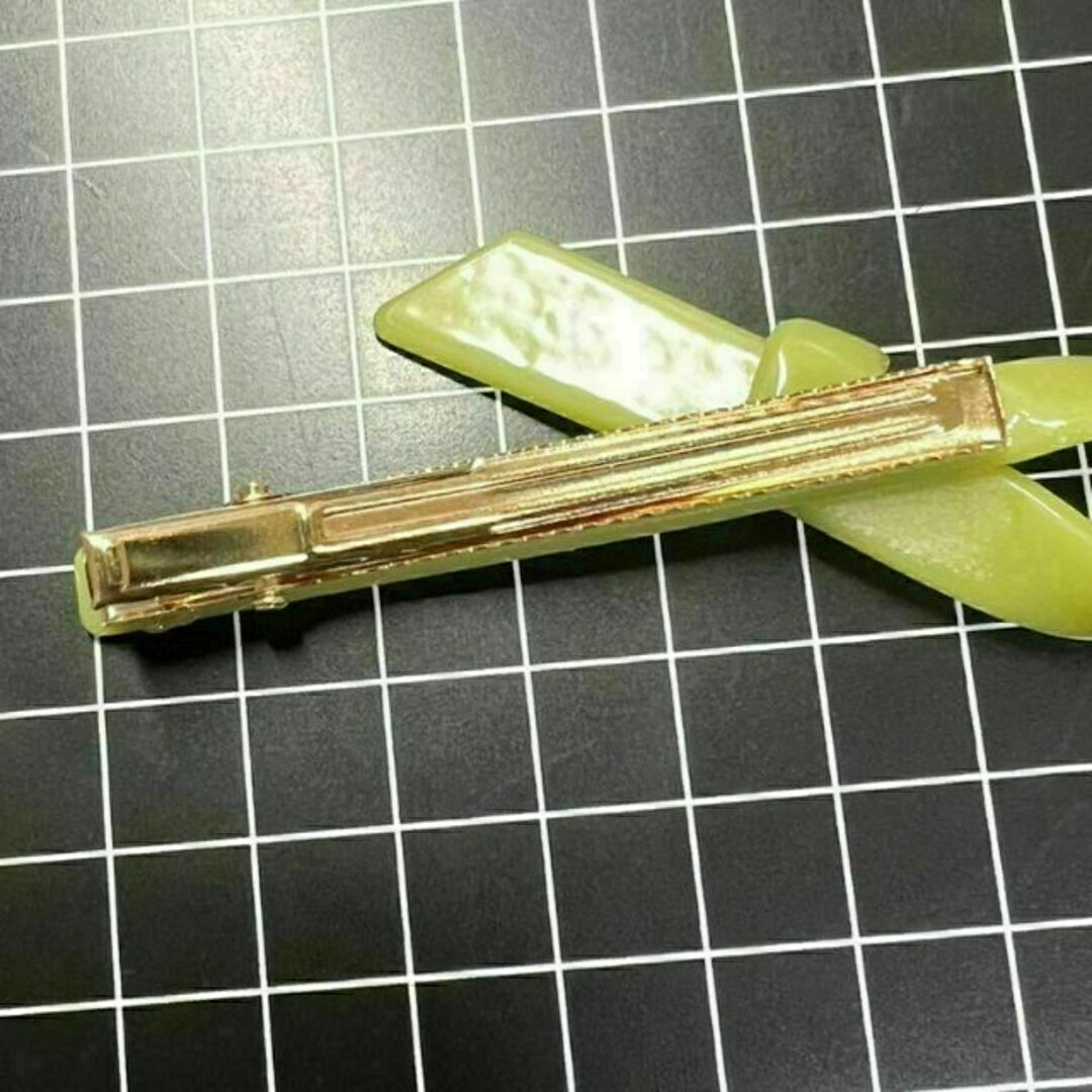 E201 匿名配送 ヘアクリップ クロス リボン グリーン ヘアピン 髪留め 前髪クリップ サイドグリップ ヘアアクセサリー