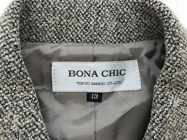 BONA CHIC レディース 毛アクリル他 日本製 肩パッド入 ジャケット 13 茶黒白MIX です。