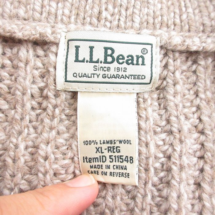 【商品名】 XL★古着 エルエルビーン 長袖 ニット カーディガン メンズ 00年代 00s ショールカラー 大きいサイズ ラムウール 茶系