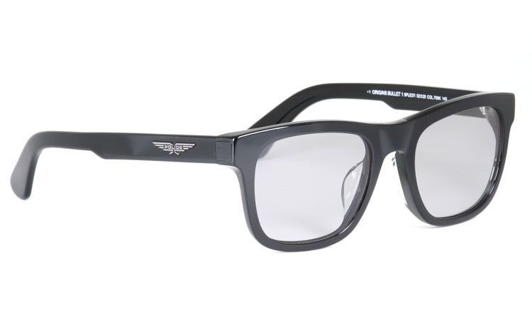 ブリッジ上部にはメタルのロゴを、また幅のあるテンプルにはPOLICEのイーグルロゴを埋め込んでいます。