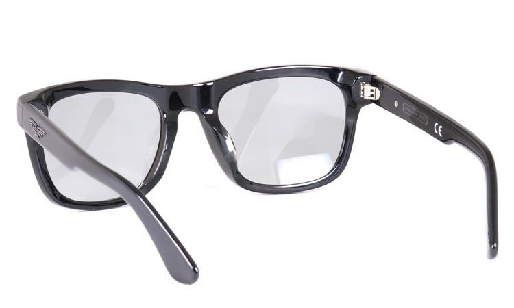 カラーは全てブラック。レンズは室内での着用も可能な極めて淡いカラー。紫外線99.9%カットで屋外でも安心。