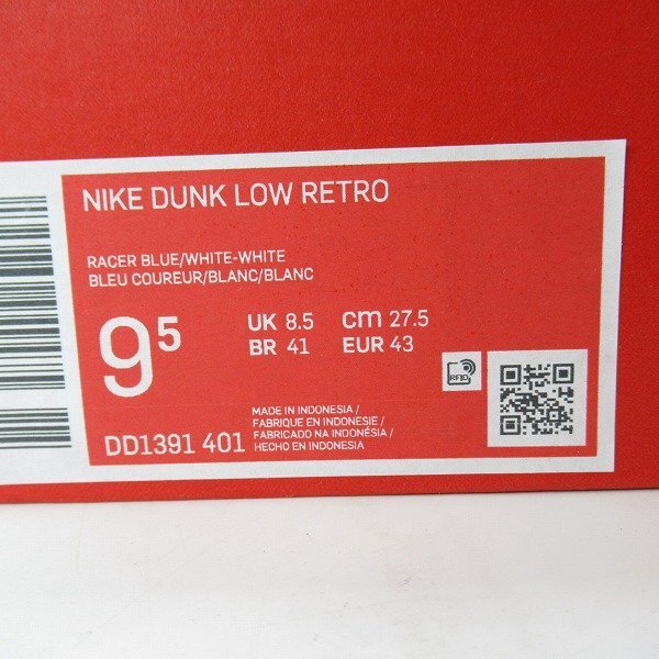 【未使用】NIKE/ナイキ DUNK LOW RETRO RACER BLUE ダンク ロー レトロ レーサー ブルー DD1391-401/27.5 /080 | |||||||||||||||||||||||||