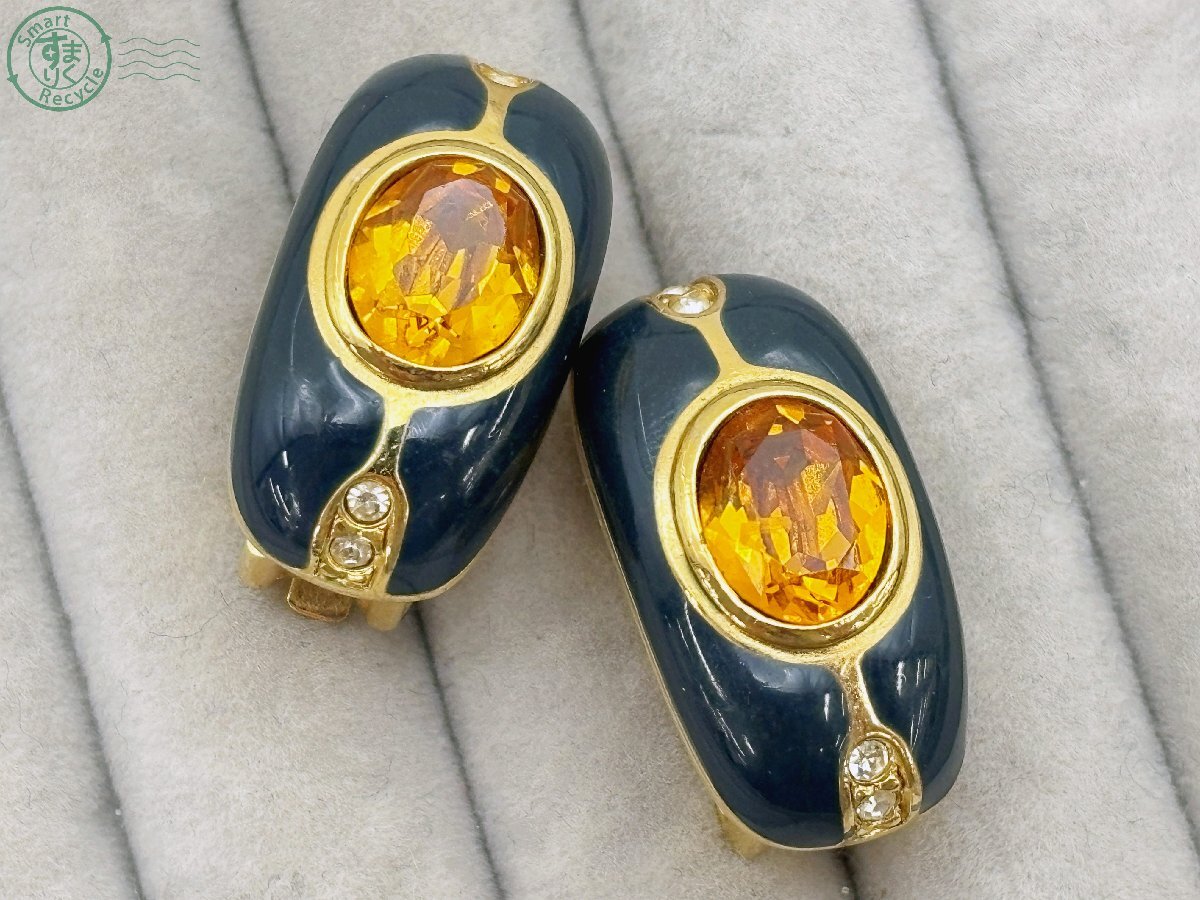♭Christian Dior クリスチャン・ディオール CD イヤリング 留め具緩 ストーン ゴールドカラー ブランド品 アクセサリー 中古 | |||