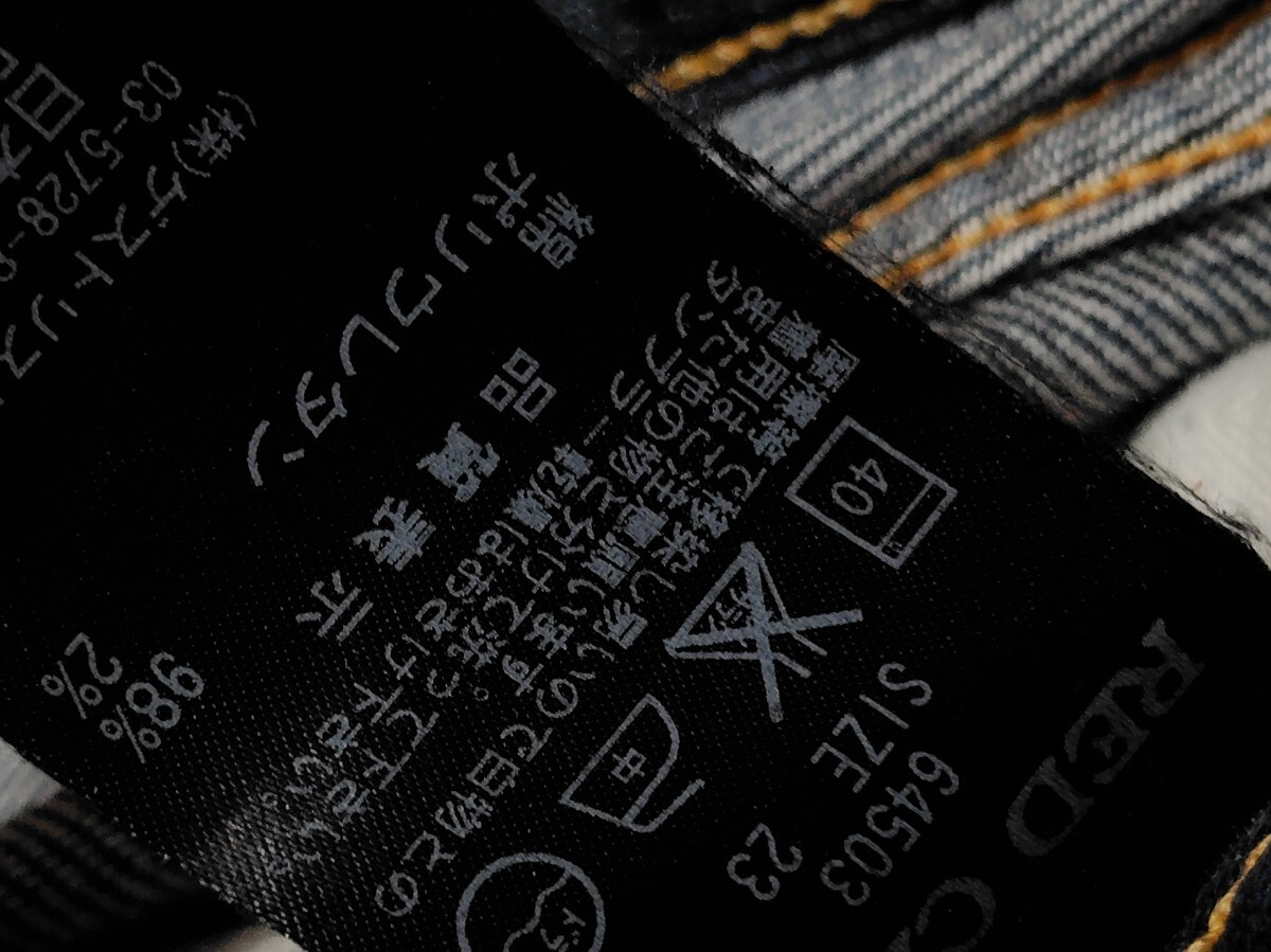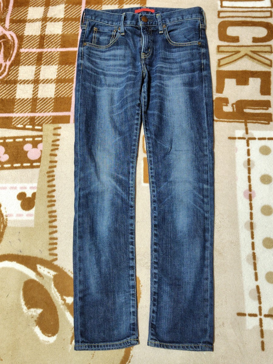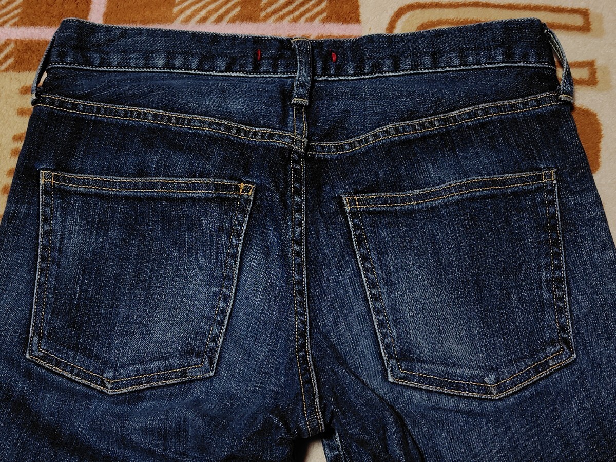 ワンシーズン着用品になります。多少着用感ありますが、目立つシミ汚れ見当たりません。ウエスト平置36.5cm、股下70.5cm、裾幅15.5cm、股上21.5(前)