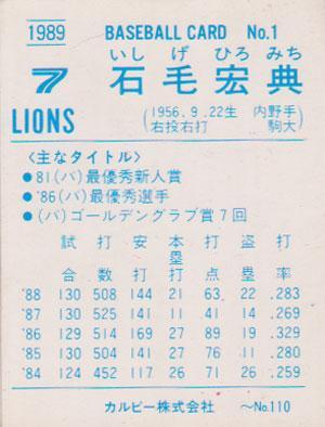 ★トレカ★1989年カルビー【#001 石毛宏典】★
