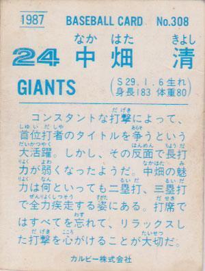 ★トレカ★1987年カルビー【#308 中畑清】★