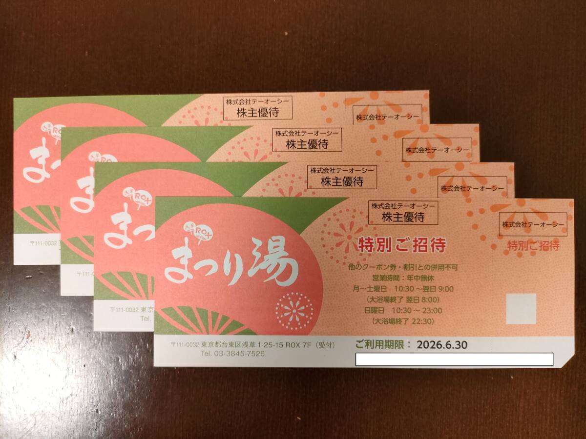 浅草ROXまつり湯 テーオーシー 株主優待券 4枚