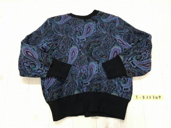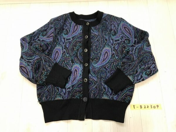 レディース ペイズリー総柄 ノーカラー ニット カーディガン 黒紫ベージュなど です。