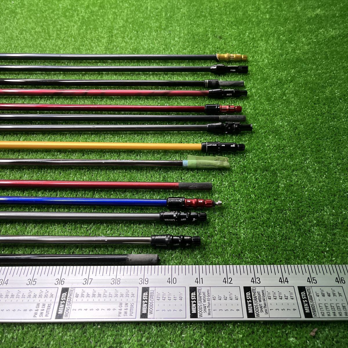 メーカーもさまざまで、長さもドライバー用、フェアウェイウッド用なども入ります。インチメジャーを横に付けましたのでご参照下さい。