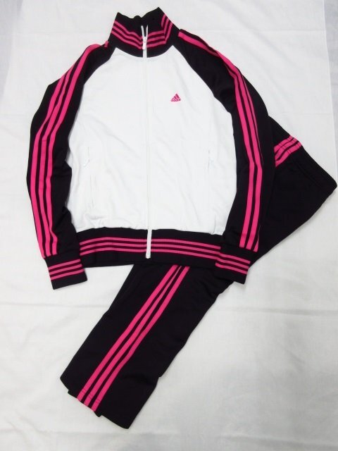 y2063 adidas ジャージ上下セット M・Sサイズ スリーライン レディース 黒×白×ピンク スポーツウェア トレーニング アディダス