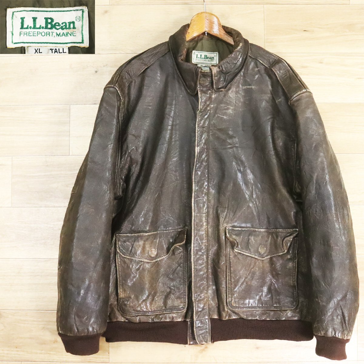 M5K/Y7.23-2 80s~ USA製 L.L.Bean エルエルビーン 本革 A-2 レザーフライトジャケット レザージャケット 革ジャン 皮ジャン