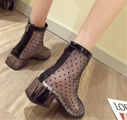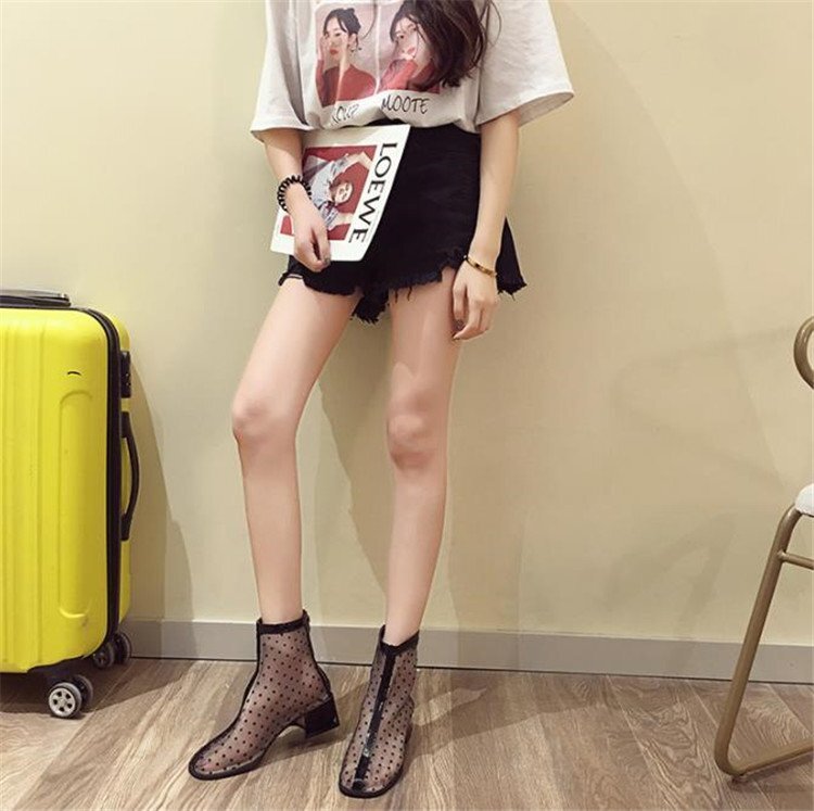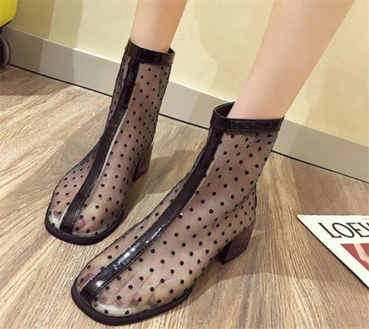 マーティンブーツ 透かし彫り 太いヒール ショートブーツ 40 ブラックメッシュ