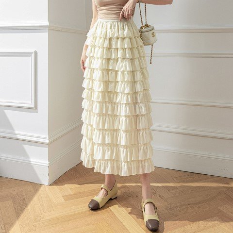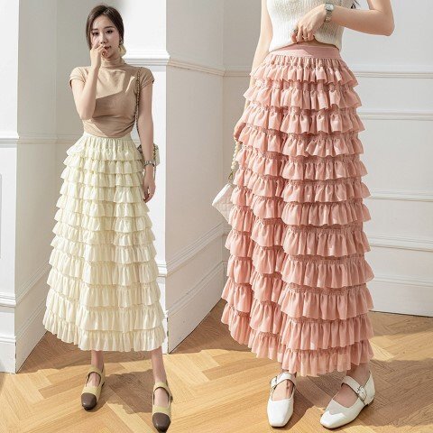 ロングスカート チュールスカート レディース INS 韓国ファッション デザイン 春夏 XL ブラック