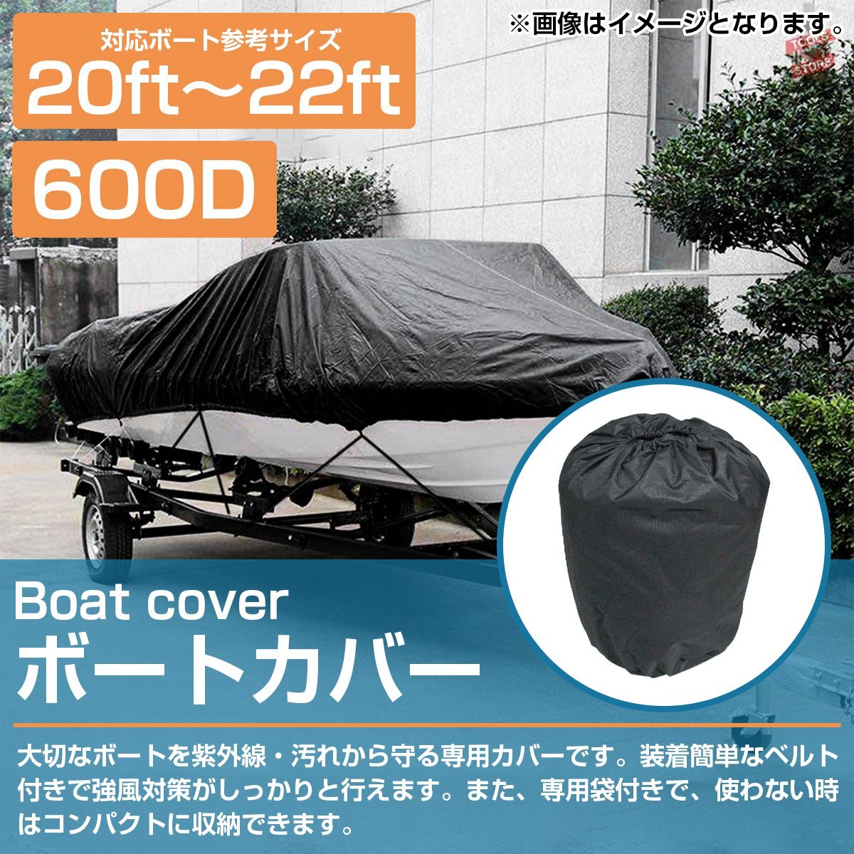 『600D!! 20ft-22ft 黒/ブラック』防水 ボートカバー 全長約710cm×幅約270cm 船体 カバー アルミボート 船 ボート 保管 船舶