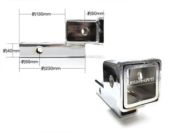 ヒッチメンバー 変換 レシーバー 40mm角→50mm角へ変換 汎用 メッキ 変換アダプター ソレックス 40mm 50mm に ヒッチキャリア