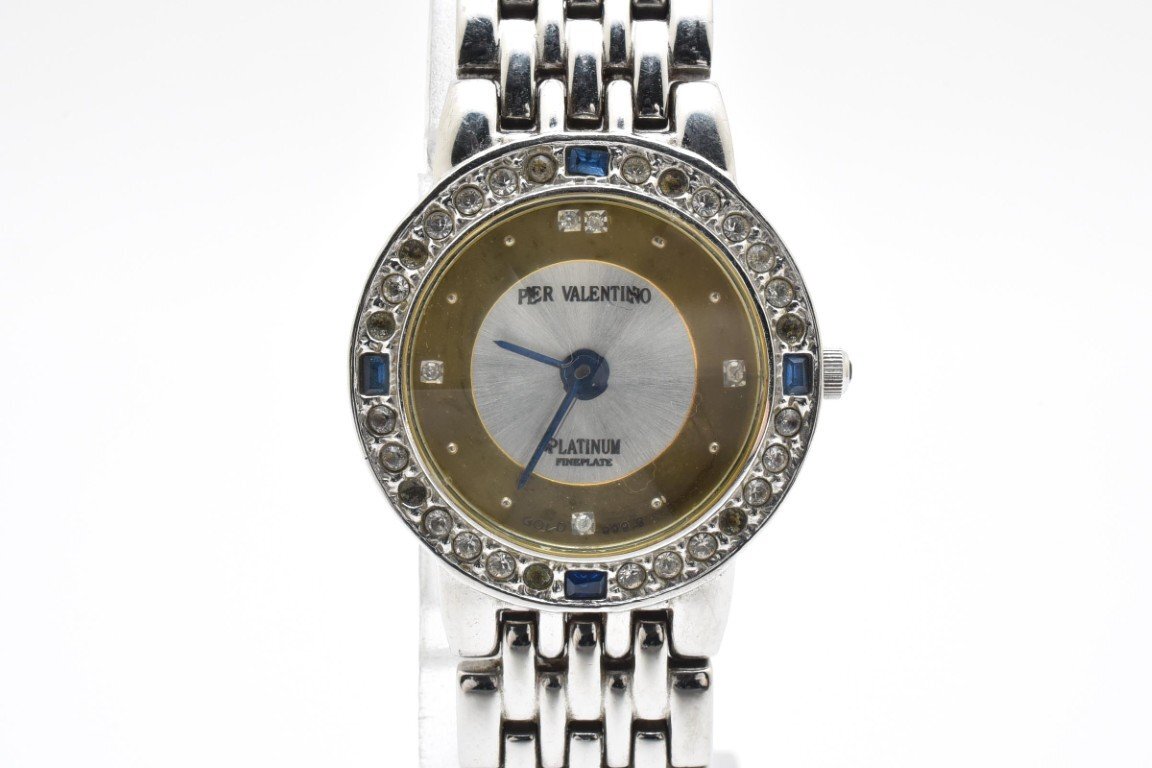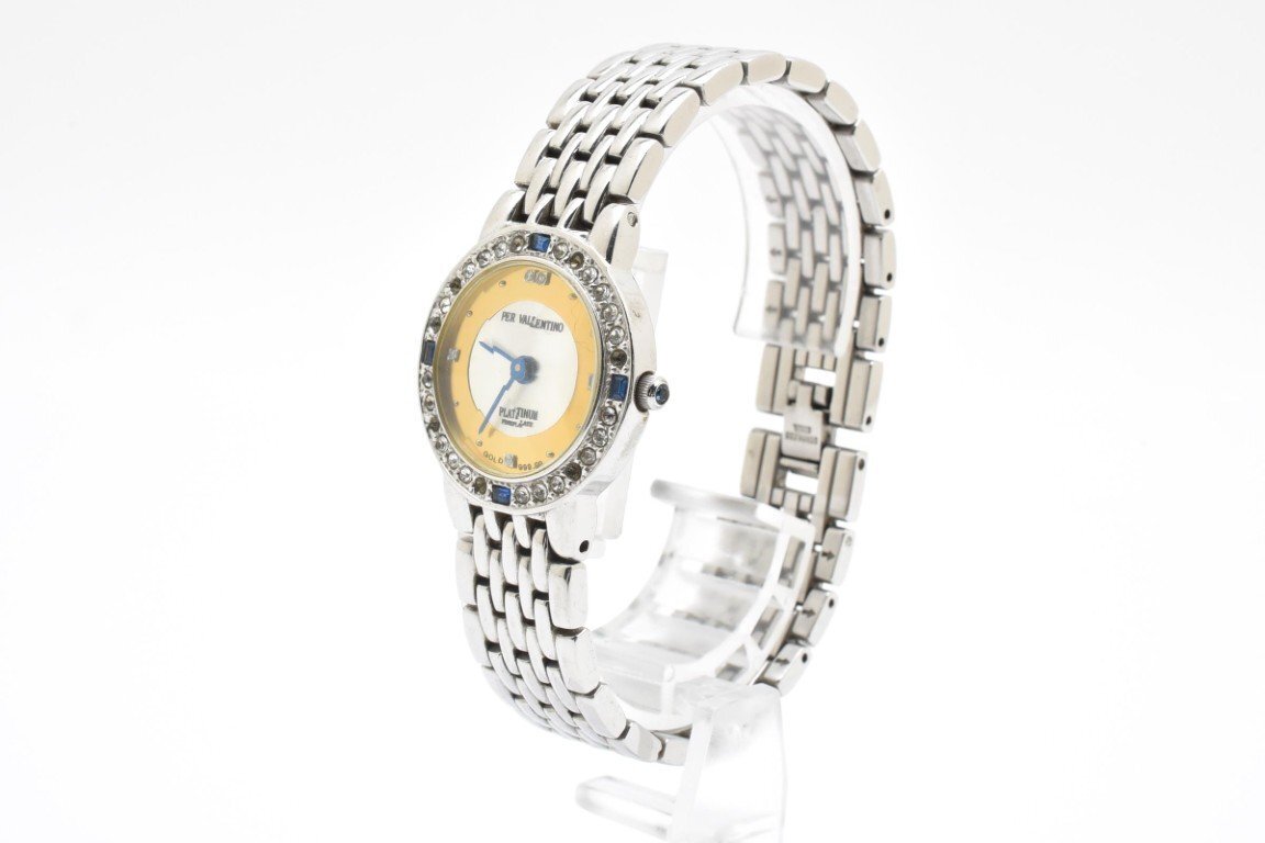 PER VALENTINO ペレバレンチノ 999.9 腕時計 レディース クォーツ式 シルバー×ゴールド文字盤 ダイヤベゼル 2針 アンティーク