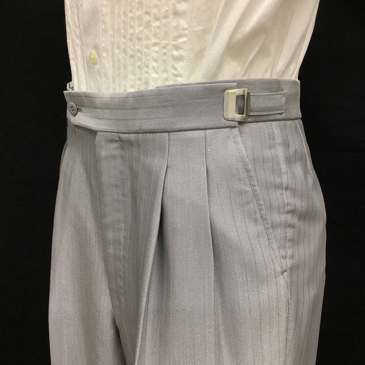 上衣と共生地のパンツはツータック、ウエストはアジャスター付きでサイズ調節可