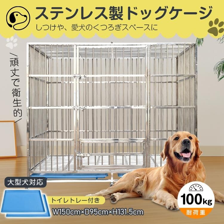 送料無料 犬用ケージ 中型犬 大型犬 ケージ 犬小屋 頑丈 ゲージ 中型犬 大型犬ゲージ 中型犬ゲージ 屋根付き キャスター付き pt088-150