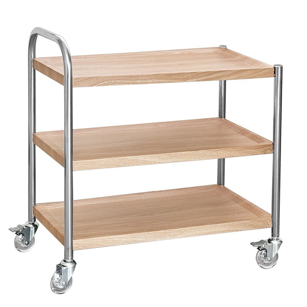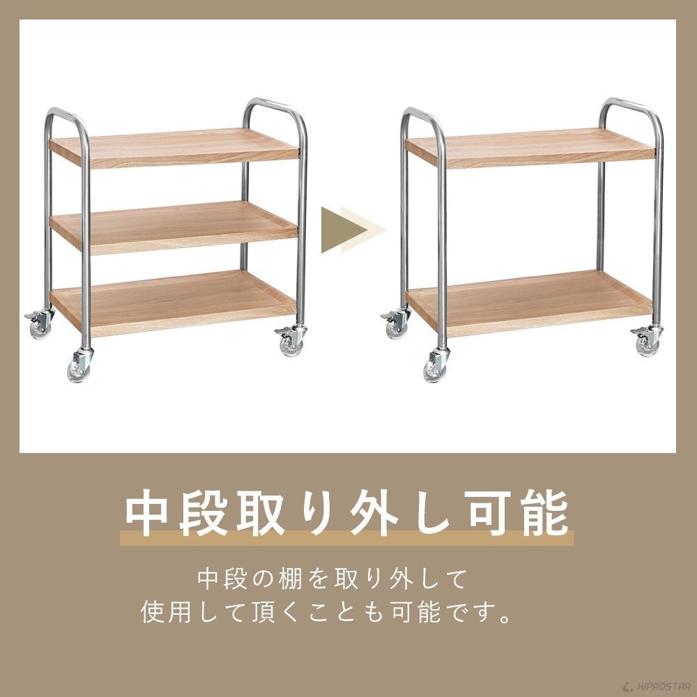即納 業務用 木目調ステンレスサービスワゴン ナチュラル 3段 シングルハンドル |