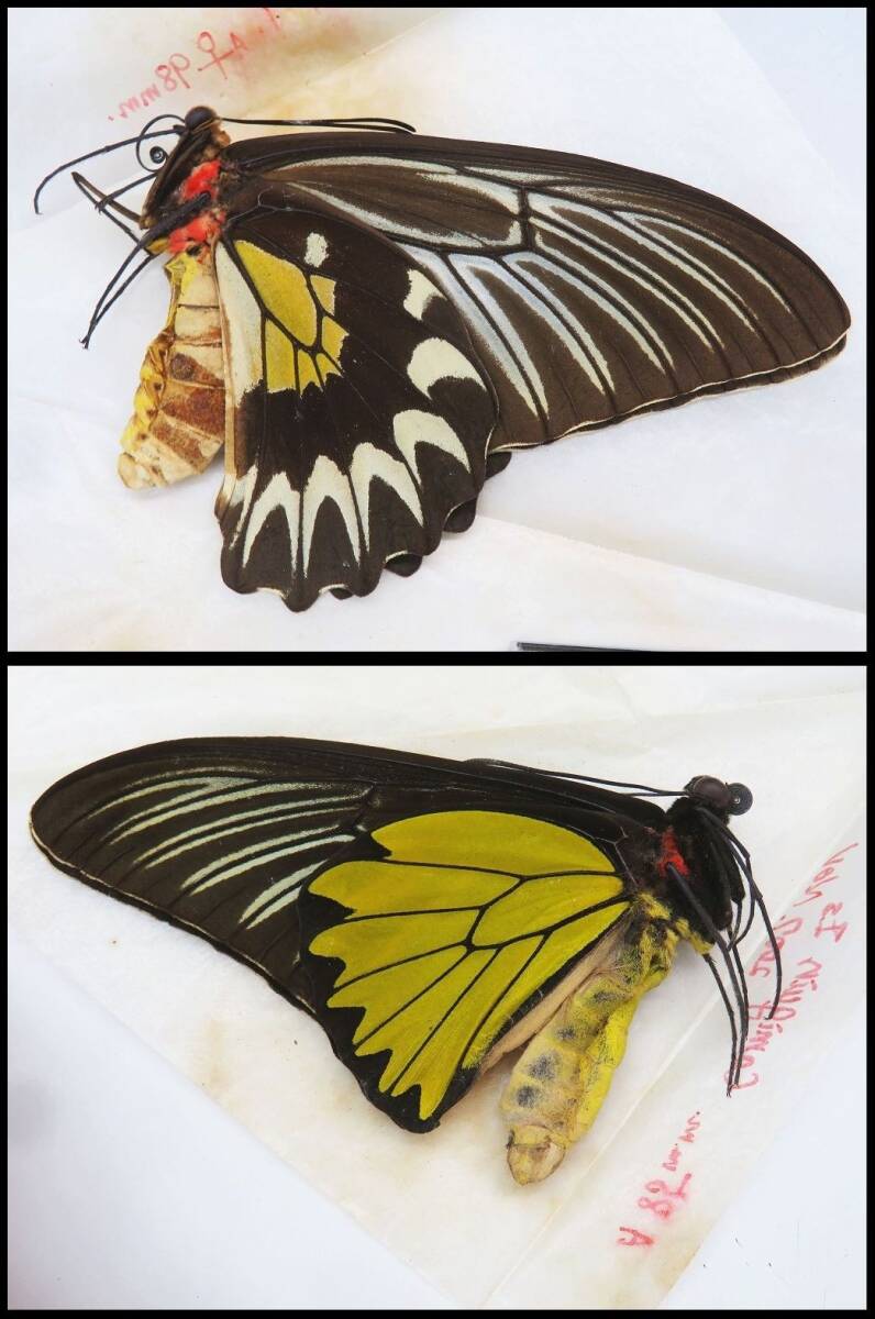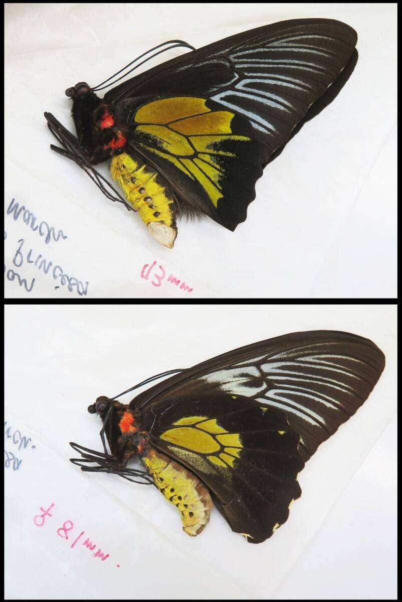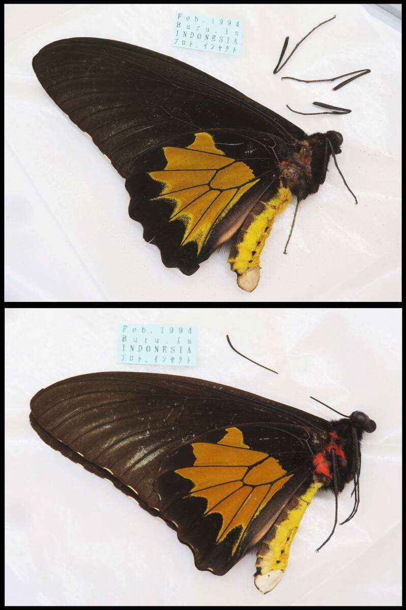 ★未展翅標本につきましては、保存中の乾燥や配送中の振動等により、触角や脚、腹部等がはずれて