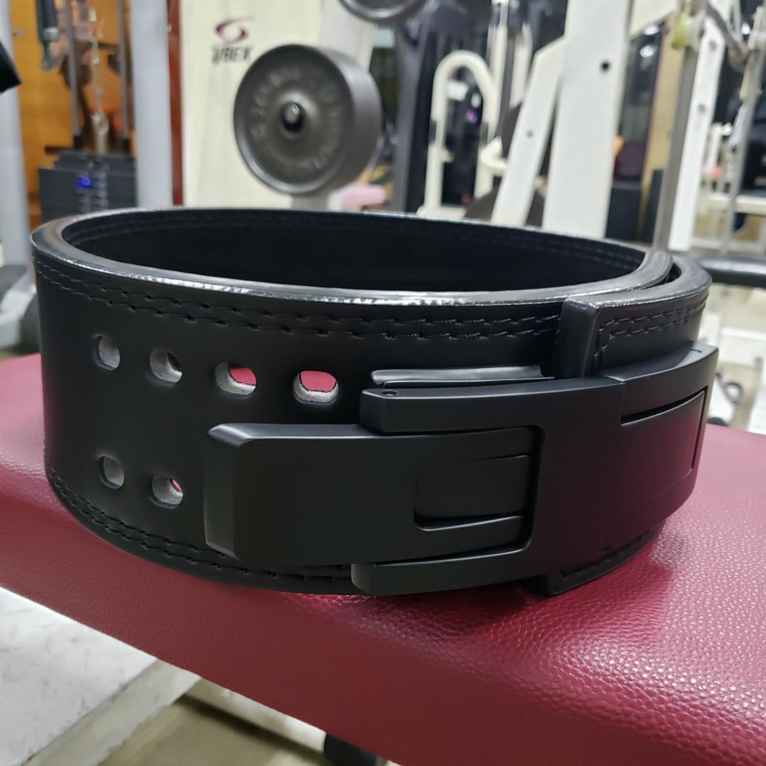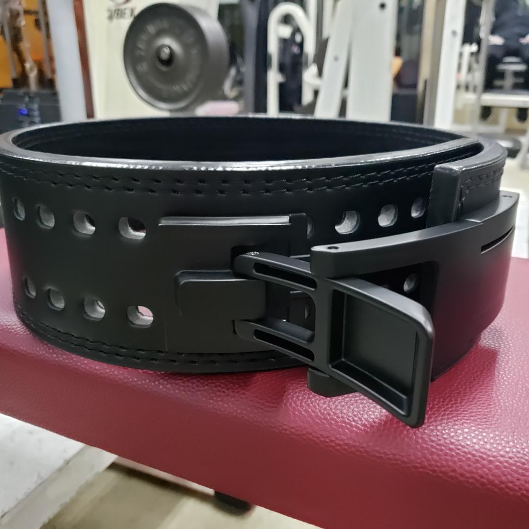 レバーアクションによりワンタッチで着脱締め付け可能なトレーニングベルトになります。