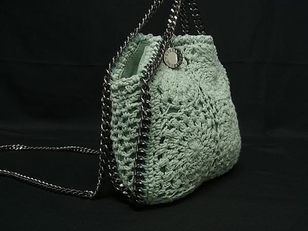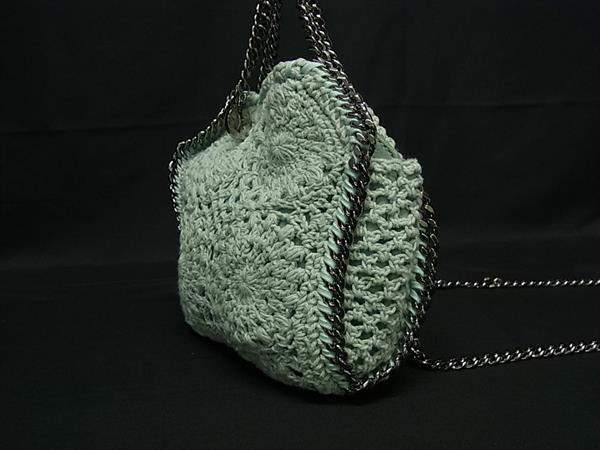 ■美品■ STELLA McCARTNEY ステラ マッカートニー ファラベラ コットン クロシェ ショルダーバッグ ライトブルー系 FP5925