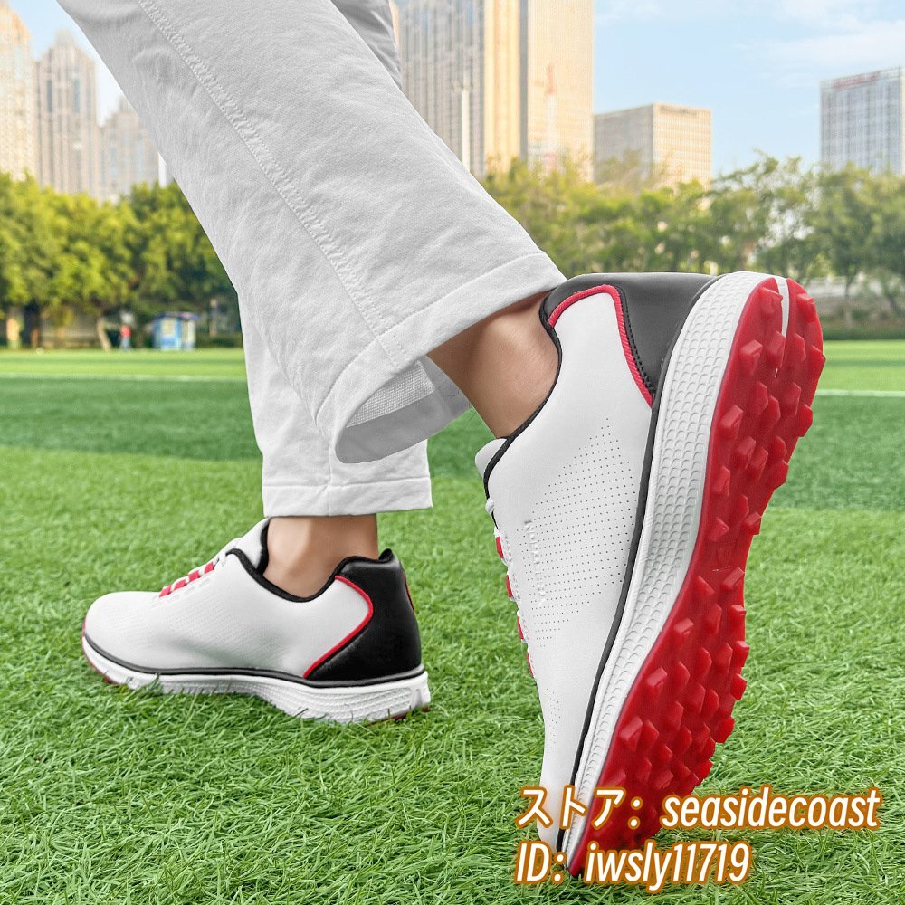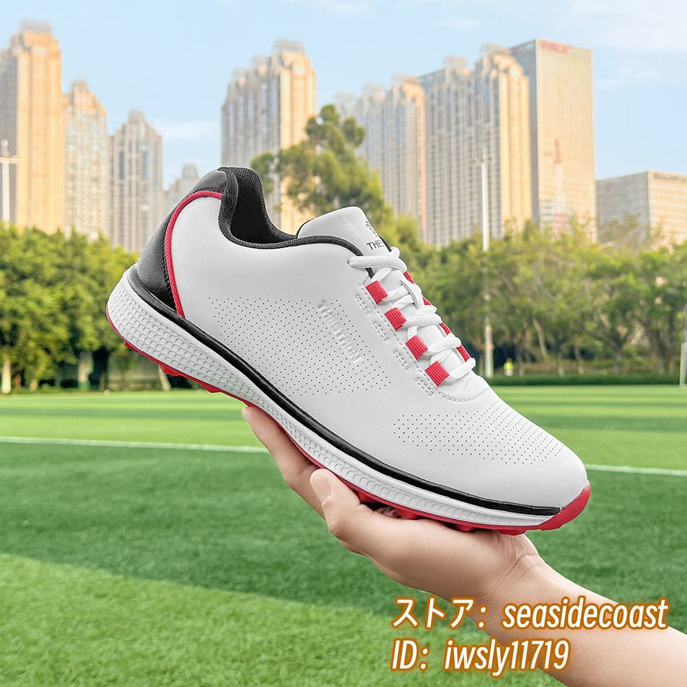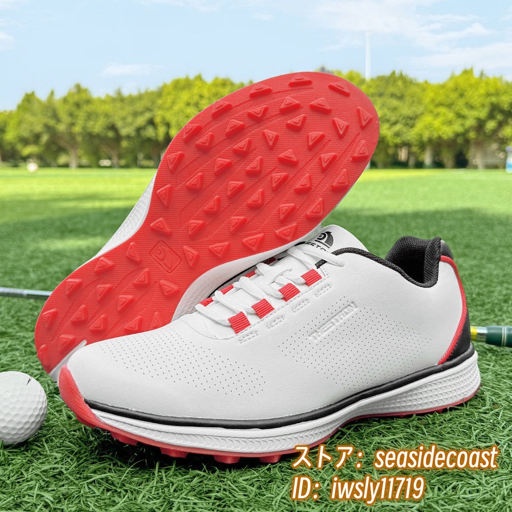 絶賛◆新品 ゴルフシューズ 通気性 スポーツシューズ メンズ 男女兼用 運動靴 耐久性 スニーカー フィット感 防滑 耐磨 白*赤 26.5cm