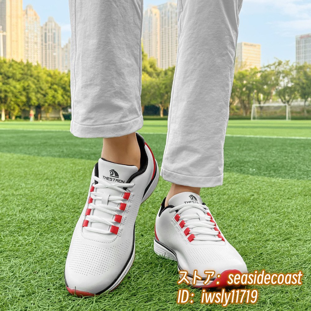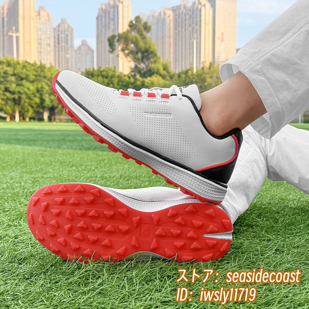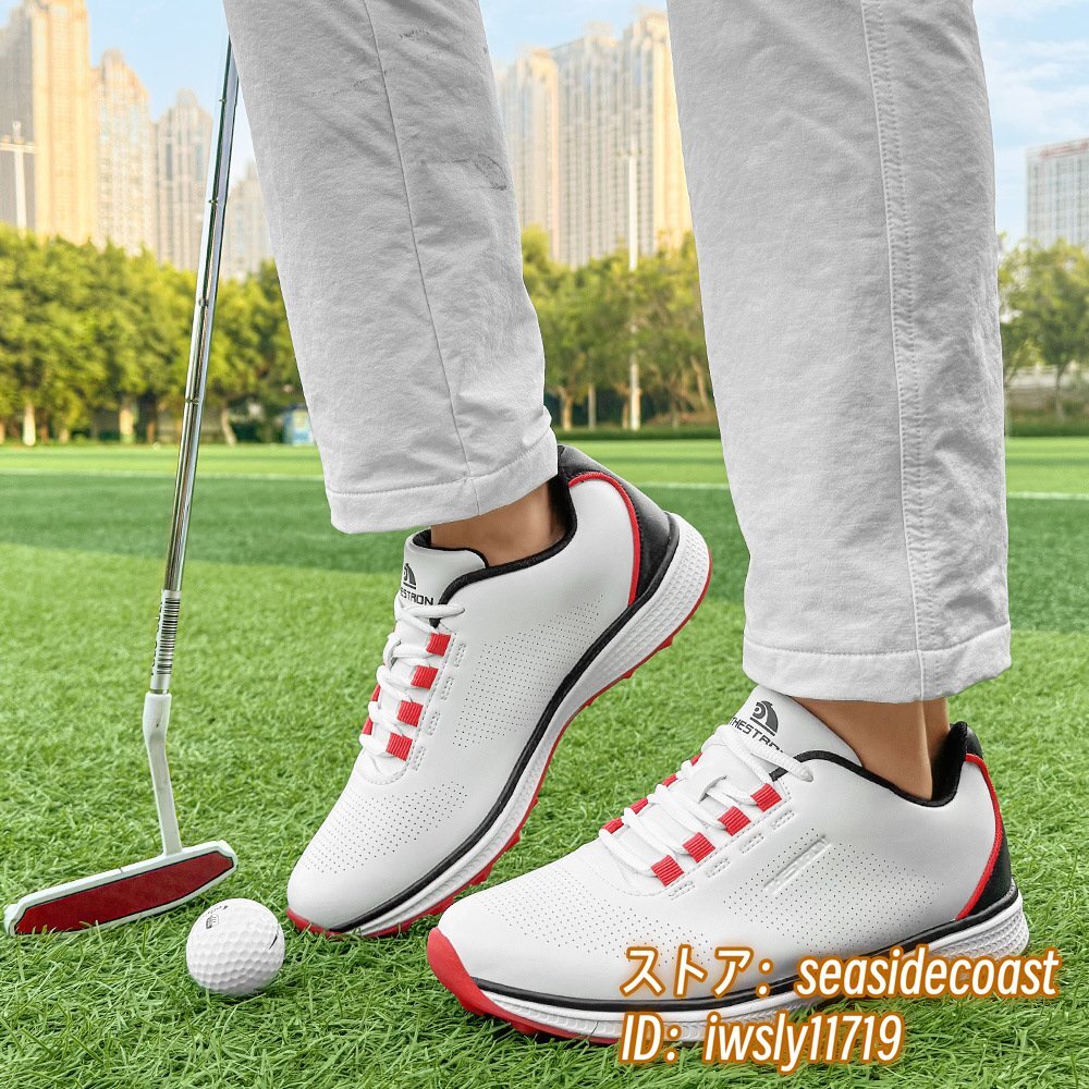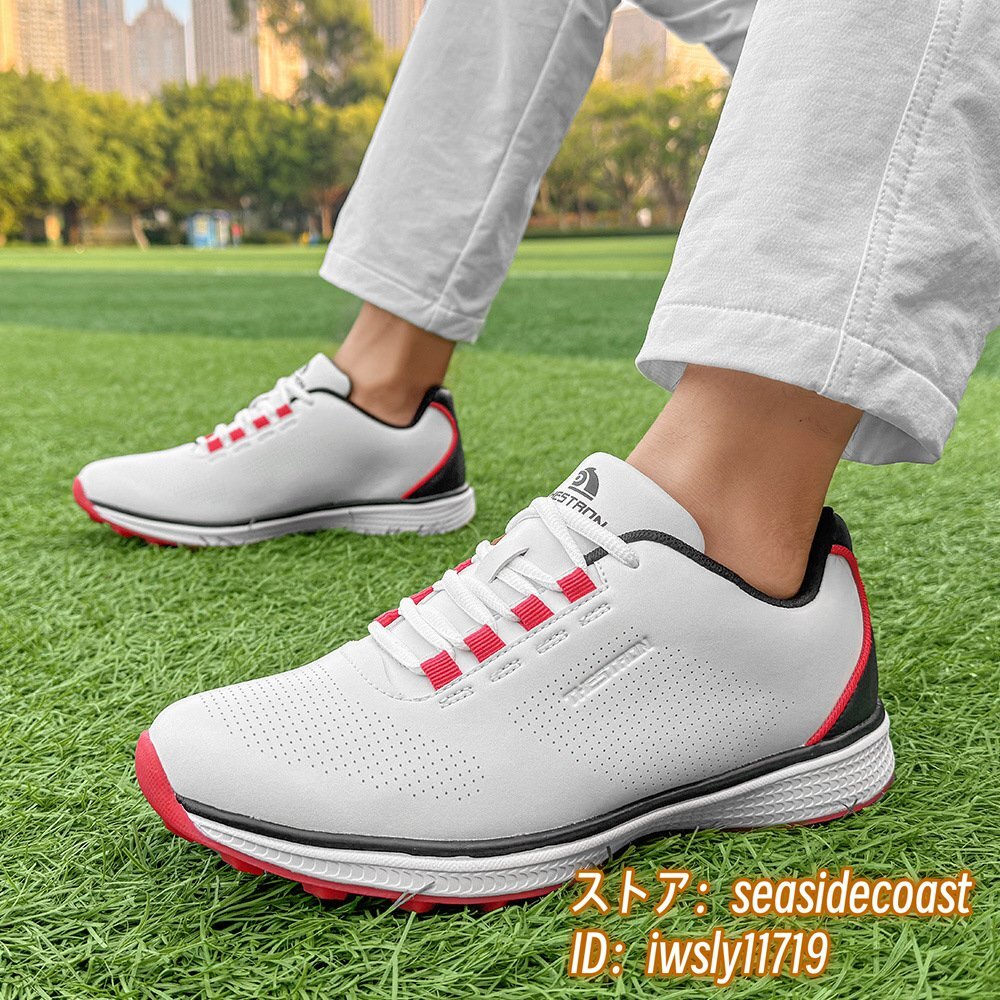 絶賛◆新品 ゴルフシューズ 通気性 スポーツシューズ メンズ 男女兼用 運動靴 耐久性 スニーカー フィット感 防滑 耐磨 白*赤 26.5cm