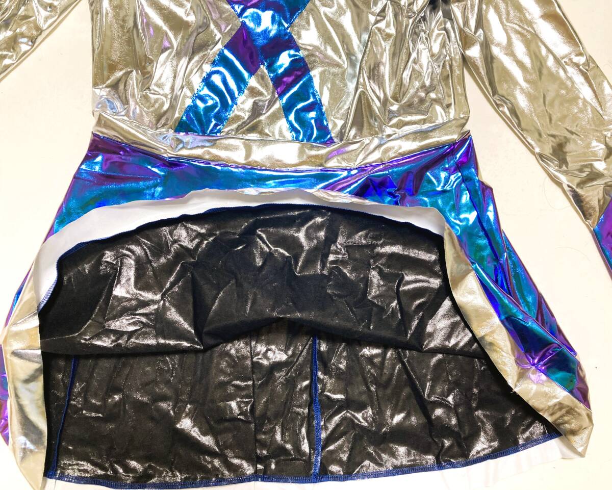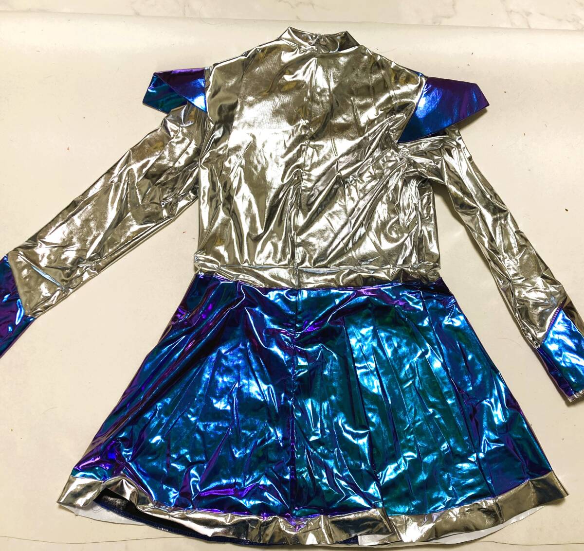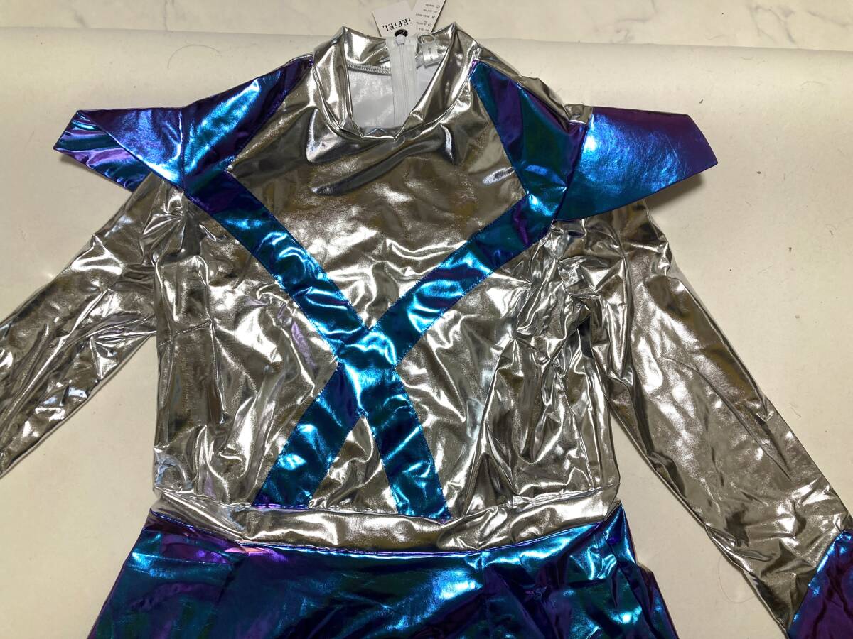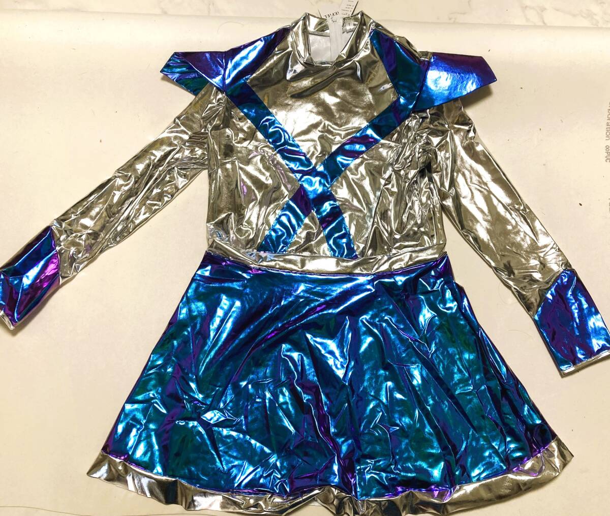 超新作 特大2XL/ブルー イベント コスチューム ホログラム スペース戦士光沢Aラインロングスリーブ コスプレ ステージ衣装 IEFIEL社製