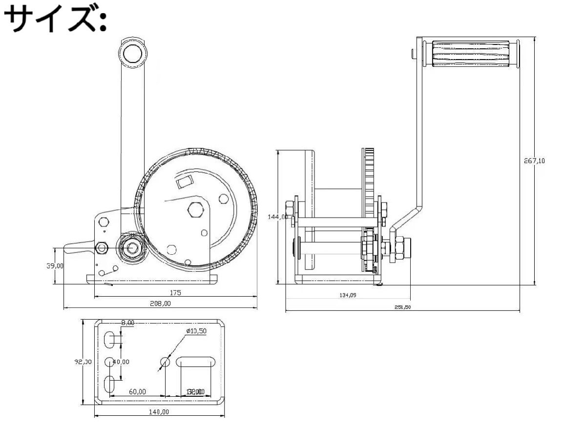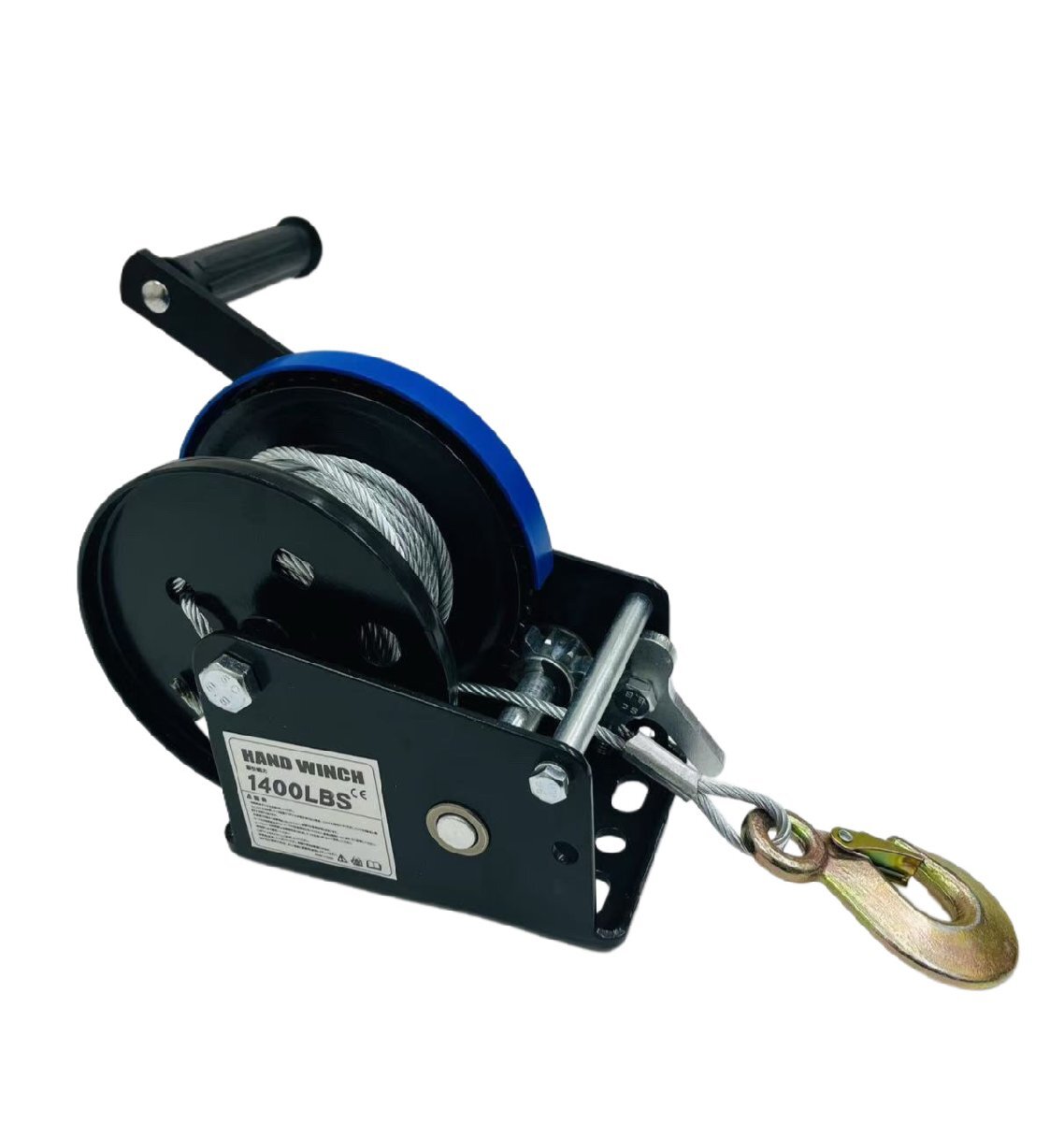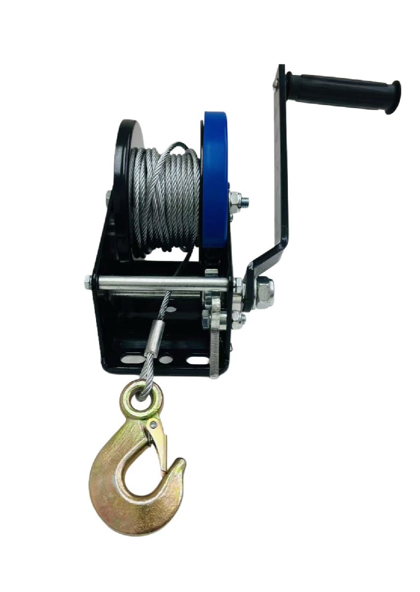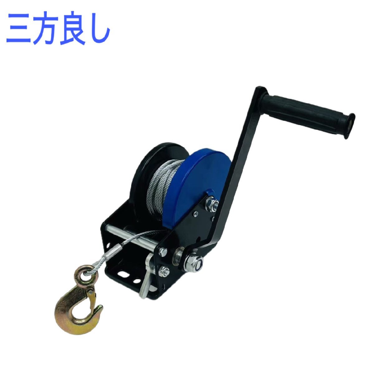 三方良し ハンドウインチ ワイヤー付 630kg 10m 最大荷重1400LBS 黒色 手動ウインチ ウィンチ 小型 移動 トレーラー バイク 荷締め ワイヤ