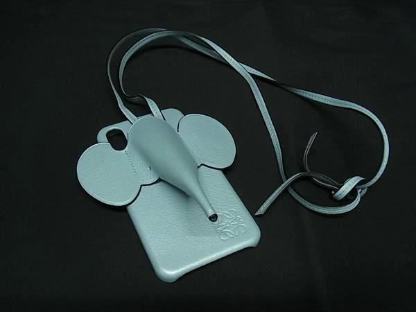 ■極美品■ LOEWE ロエベ アナグラム レザー エレファント 象 iPhoneX/XS 対応 アイフォンケース ライトブルー系 FR4246