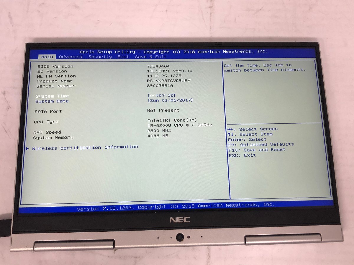 ジャンク/ NEC PC-VK23TGVG9UEY Intel Core i5-6200U メモリ4.1GB ストレージ無し 【K22128】