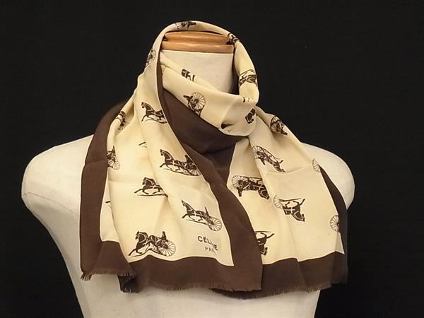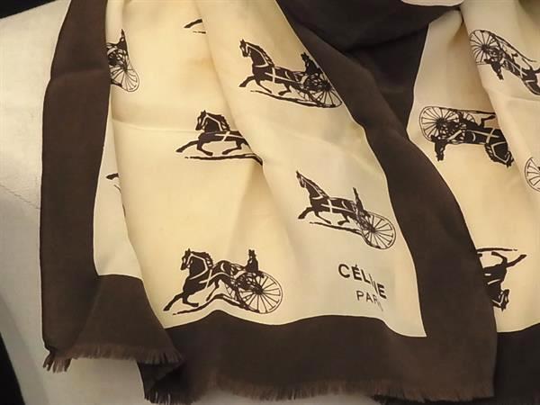 CELINE セリーヌ スカーフ ストール ショール レディース メンズ ブラウン系×クリーム系 DH9088